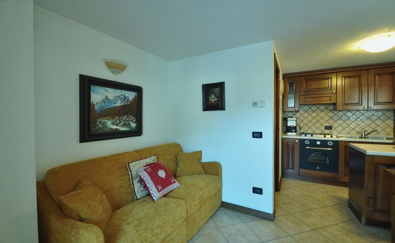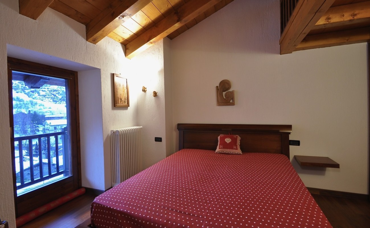 In Località Bathieu, a pochi passi da tutti i principali servizi commerciali e sportivi, proponiamo in vendita, frutto di un accurato recupero di un antico fabbricato completato nel 2006, un caratteristico alloggio a piano secondo disposto su due livelli con soppalco dotato di un luminoso abbaino.
